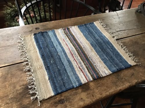 Title (ebay affiliate link): Antique Large Candle Mat Table Rug Mat Runner Brown & Blue Country AAFA Textile