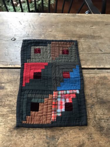 Title (ebay affiliate link): Large BEST Early Antique Log Cabin Candle Mat Table Quilt Square AAFA