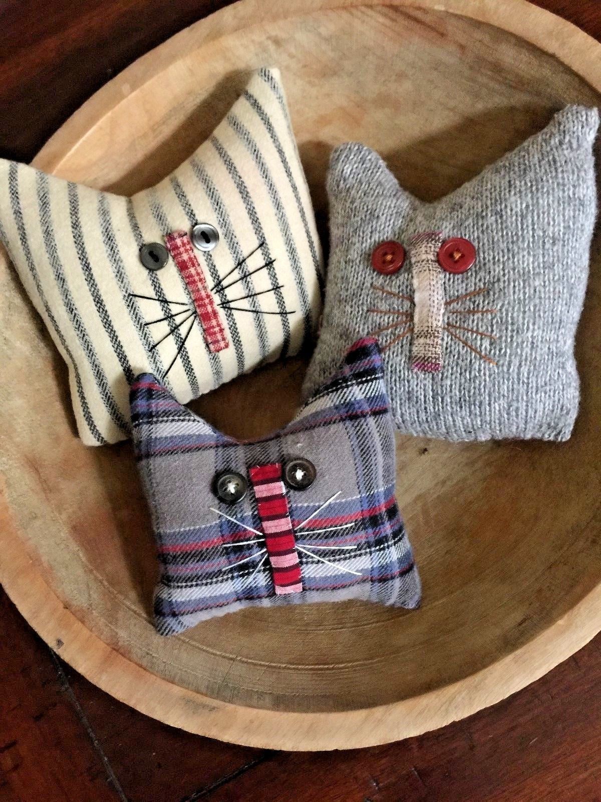 Primitive Old Home Cats Bowl Fillers Set of 3 Winter