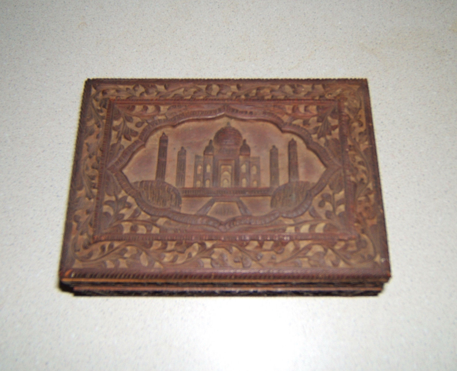 ANTIQUE BEAUTIFULLY HAND CARVED INDIAN ROSEWOOD BOX WITH TAJ MAHAL