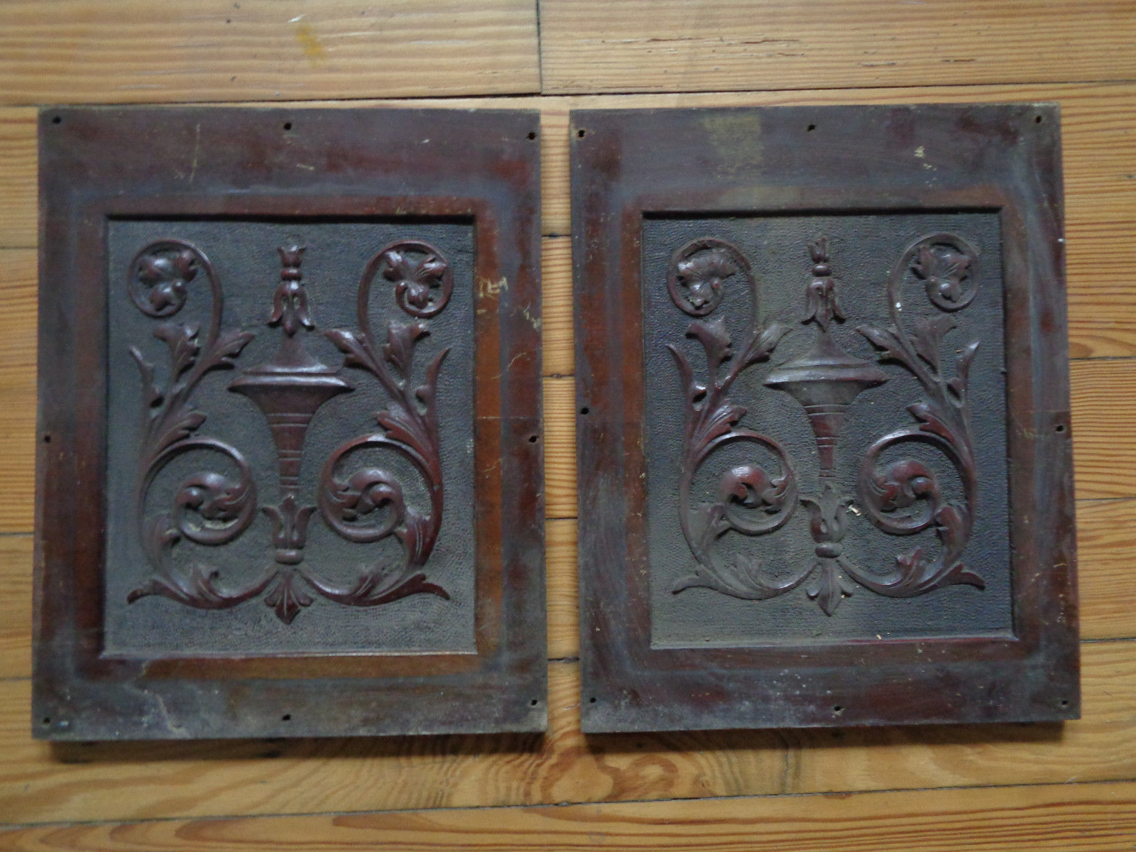 Title (ebay affiliate link): 2 Antique Fancy Wood Piano ? Furniture ? Panel Barn Find Salvage Architectural