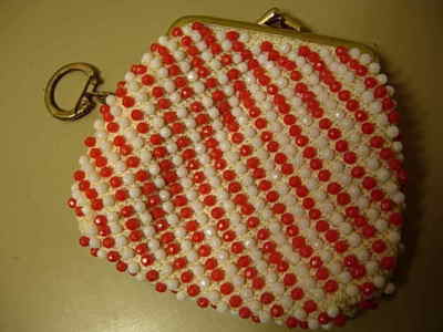 Vintage Beaded Cloth Keychain Coin Change Purse