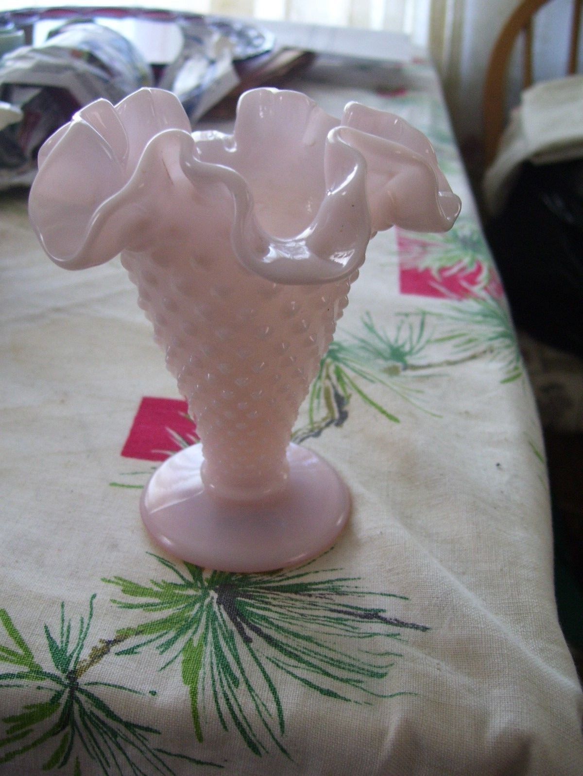 FENTON HOBNAIL OPALESCENT PINK MILK GLASS VASE
