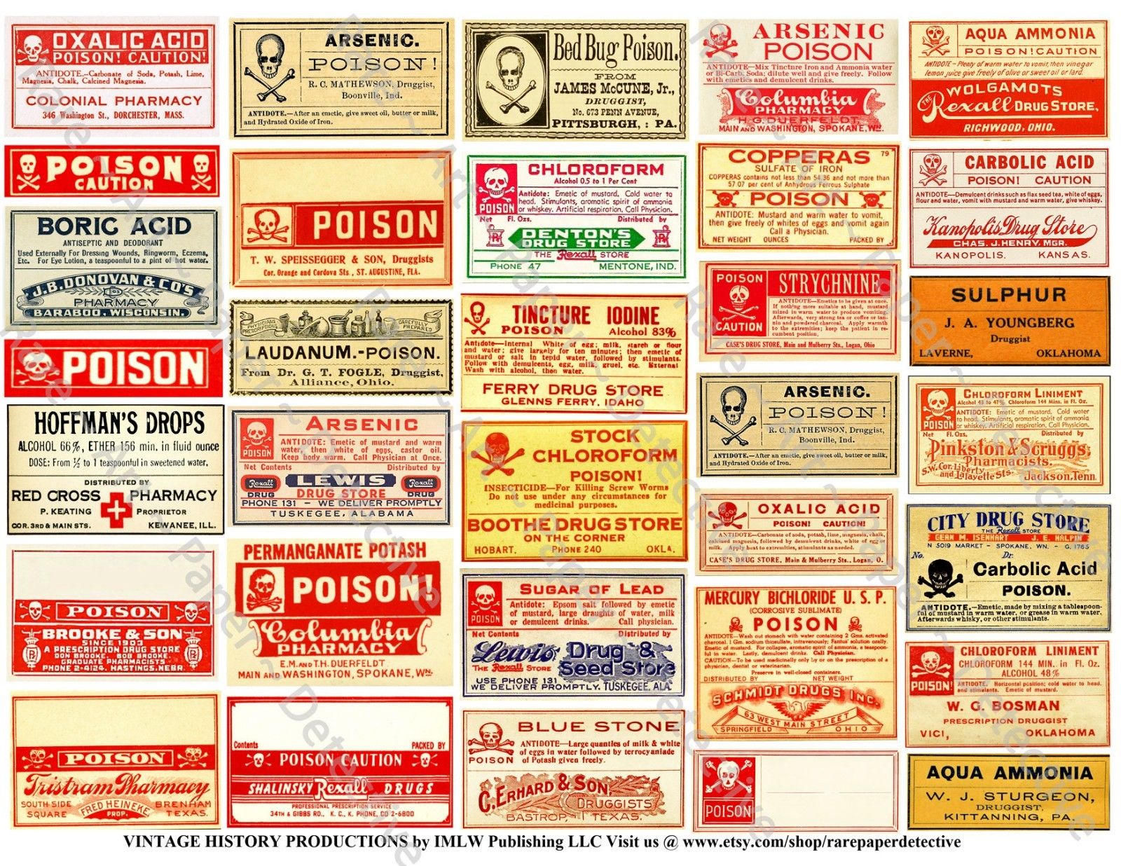 Title (ebay affiliate link): Pharmacy Labels, 1 Sticker Sheet, Antique Apothecary Poison Labels, Drug Store