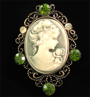 Title (ebay affiliate link): New Antique Style Green Cameo Crystal Pin Brooch P516