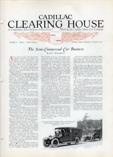 August 30, 1917 Cadillac Sales Bulletin, Clearing House, Cadillac Trucks