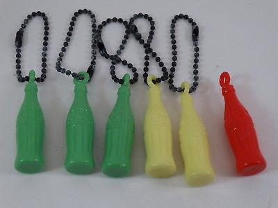Title (ebay affiliate link): Six Coca Cola Miniature Bottle Key Chain Neon Colors Yellow Green Red
