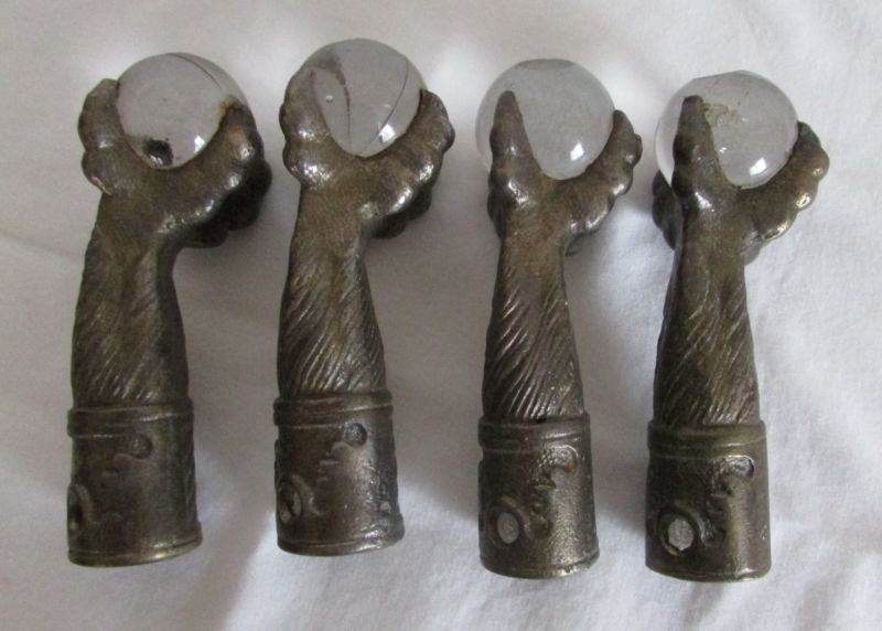 Antique Glass Ball Claw Feet Cast Iron ~ Matched Set of 4