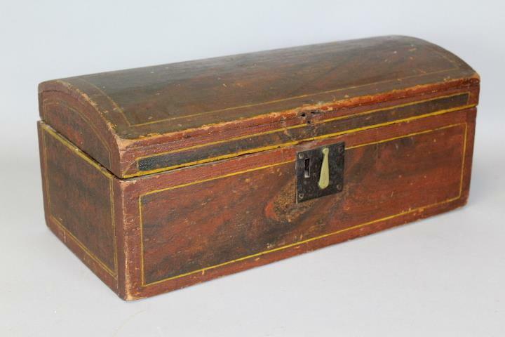Title (ebay affiliate link): A GREAT PAINT DECORATED 19TH C PA DOME TOP STORAGE CHEST IN ORIGINAL FANCY PAINT