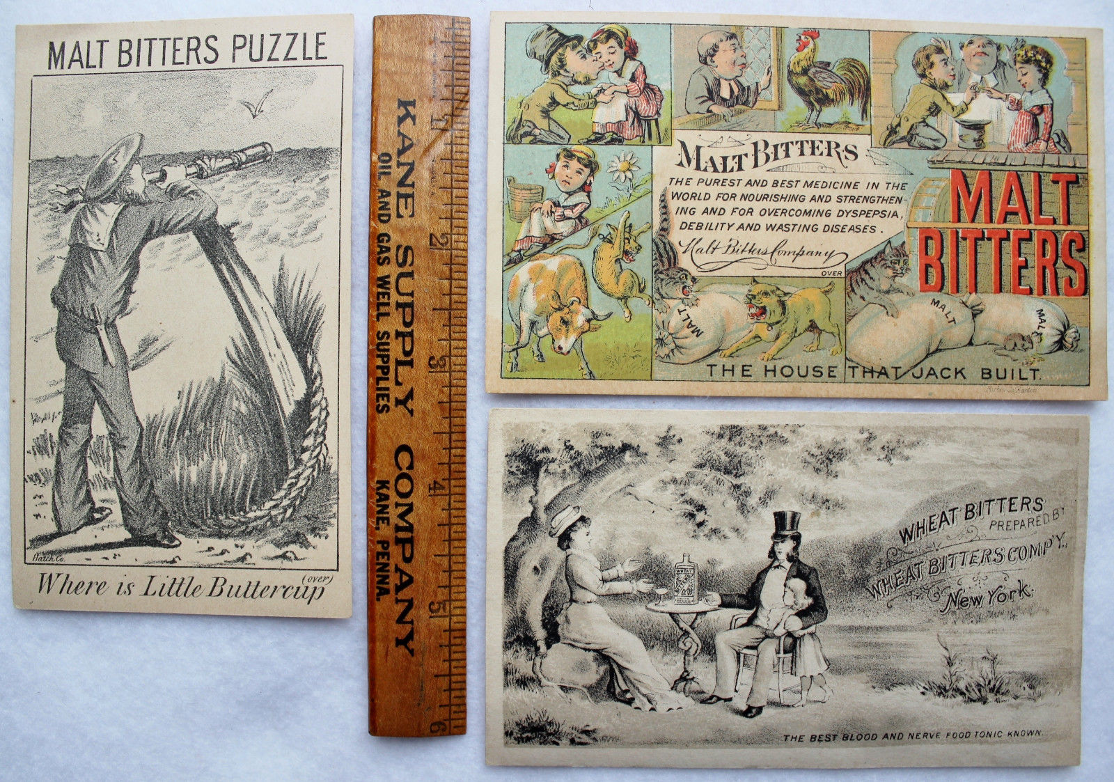 Title (ebay affiliate link): Antique MALT WHEAT BITTERS CO. BOSTON NEW YORK Rare Medicine Bottle TRADE CARDS