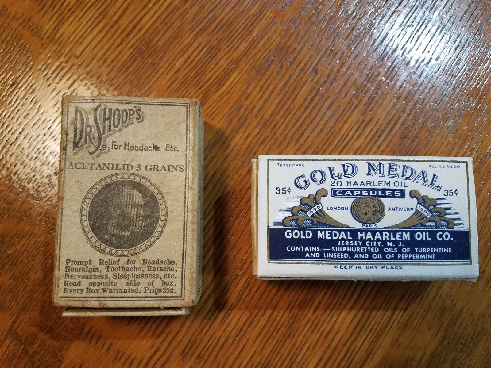Quack Cure Vintage Antique Medicine Boxes Dr Shoops God Medal Capsules Pills