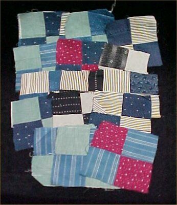 Title (ebay affiliate link): 23 Vintage Antique Quilt Blocks Cotton Fabric Doll Victorian Era Hand Piece BLUE
