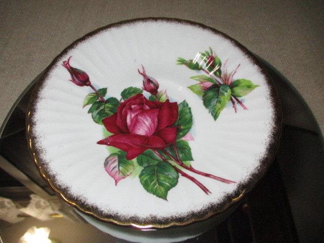 Title (ebay affiliate link): COOKIE BISCUIT TEA SAUCER PARAGON BLOOD RED ROSE GRANDMOTHER''S ROSE GOLD DUSTED