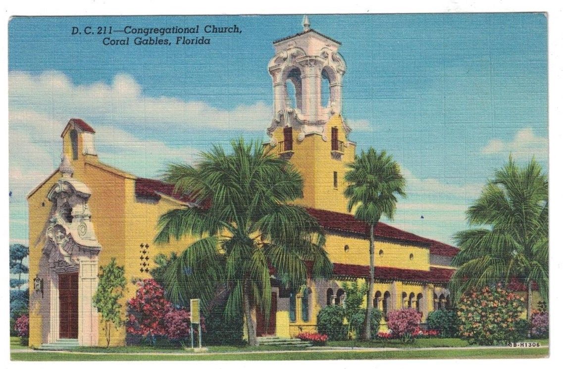 Title (ebay affiliate link): VINTAGE 1940''S CONGREGATIONAL CHURCH CORAL GABLES FLORIDA POSTCARD