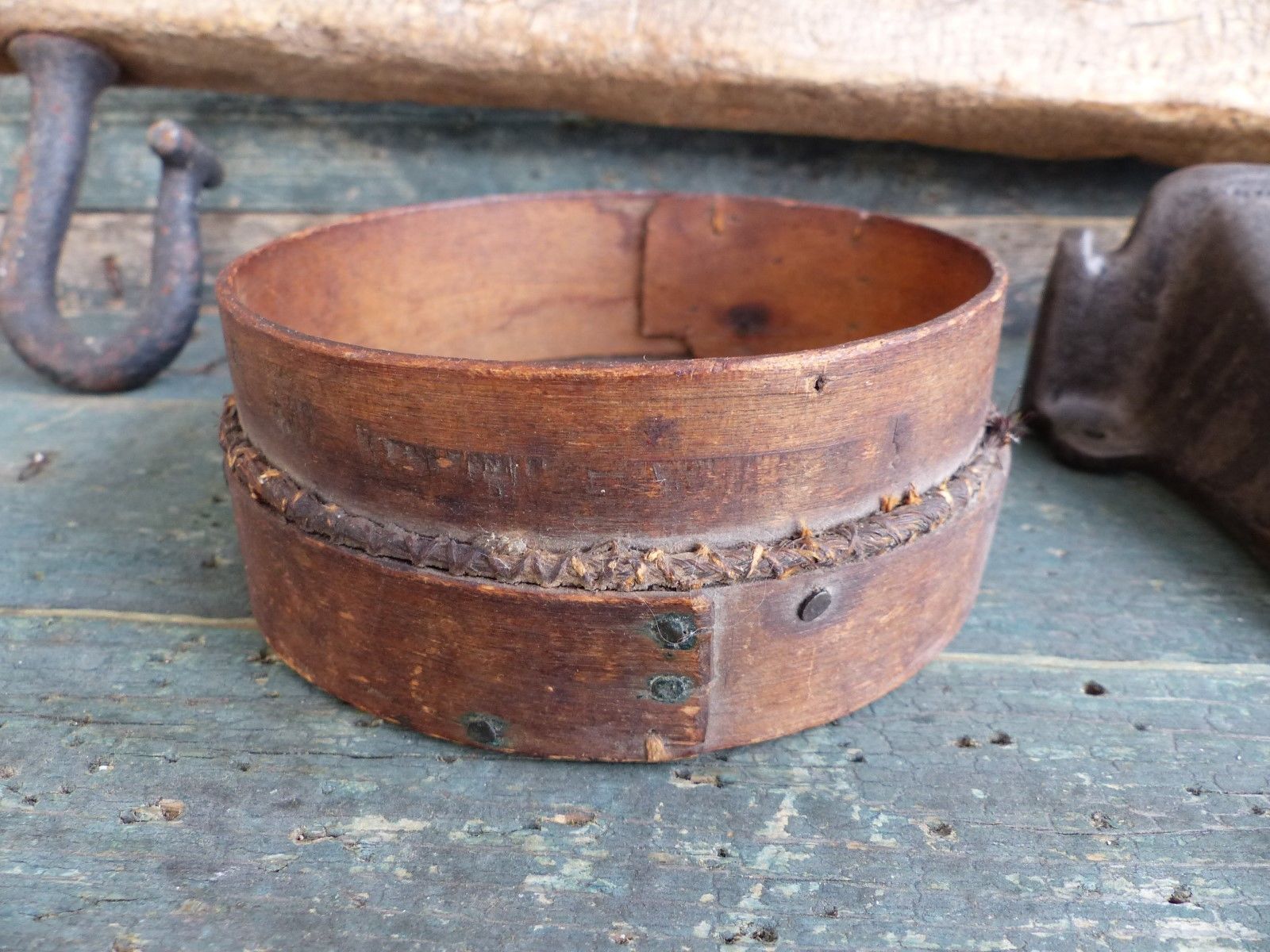 antique primitive small 19th c shaker grain sieve sifter strainer square nails