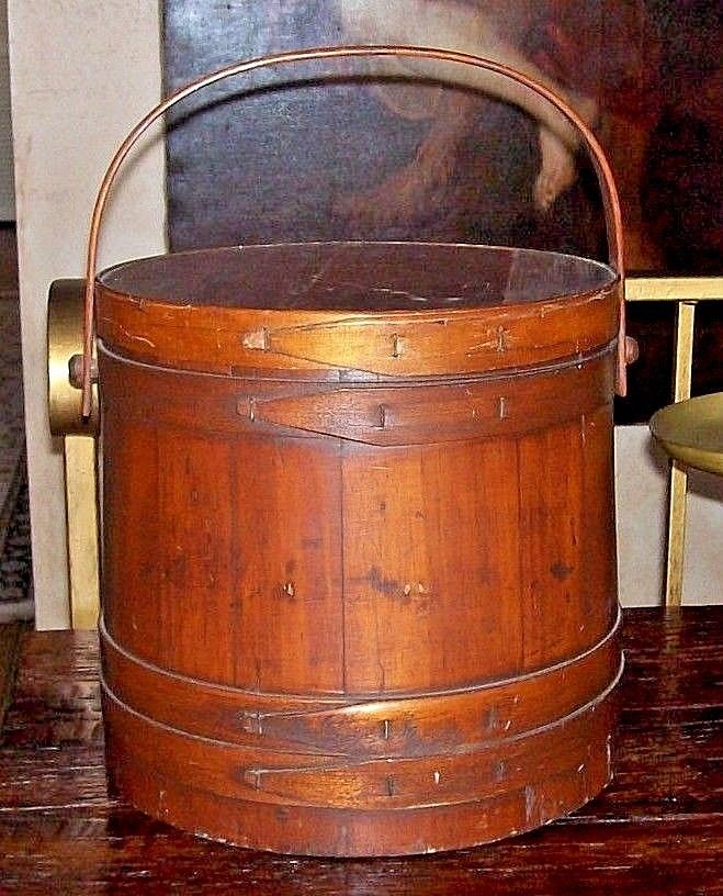 Title (ebay affiliate link): ANTIQUE SHAKER FIRKIN LARGE SIZE 4 FINGER BANDS COPPER STAPLES LID NO RESERVE!!