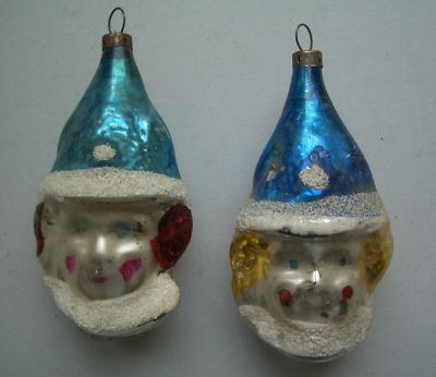 Title (ebay affiliate link): 2 ANTIQUE Blown Glass JASPER HEADS Christmas Ornaments