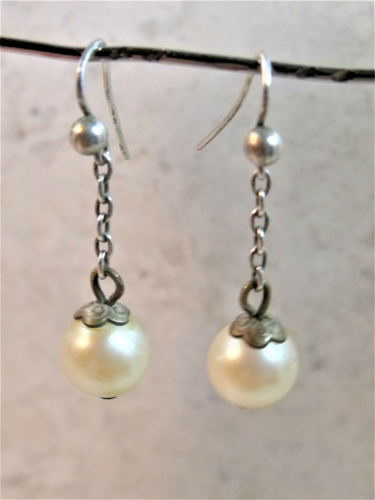 Title (ebay affiliate link): ANTIQUE ART DECO SILVER BELCHER LINK CHAIN DROP DANGLE PEARL EARRINGS NOT SCRAP