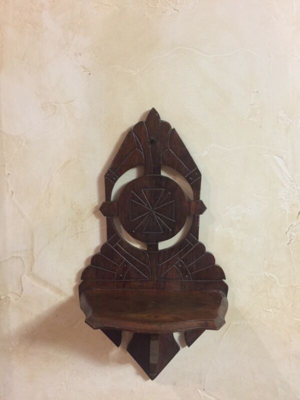 antique walnut carved wooden wall shelf