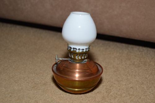 Title (ebay affiliate link): Vintage brass & opaque glass mini oil lamp night light