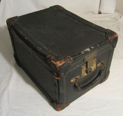 Unusual Shaped EXCELSIOR LINED ANTIQUE TRAVEL CASE with Drawer -- 11" x 14" x 9"