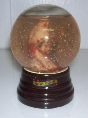 ANTIQUE NY Souvenir SNOW GLOBE Boy On SLED
