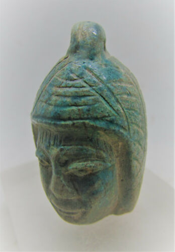 Title (ebay affiliate link): BEAUTIFUL ANCIENT EGYPTIAN GLAZED FAIENCE AMULET HEAD OF PHAROAH