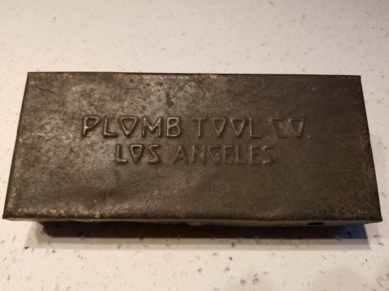 Title (ebay affiliate link): Vintage Metal Box Plomb Tool Co Los Angeles - 6.5 inch Empty Distressed Rustic