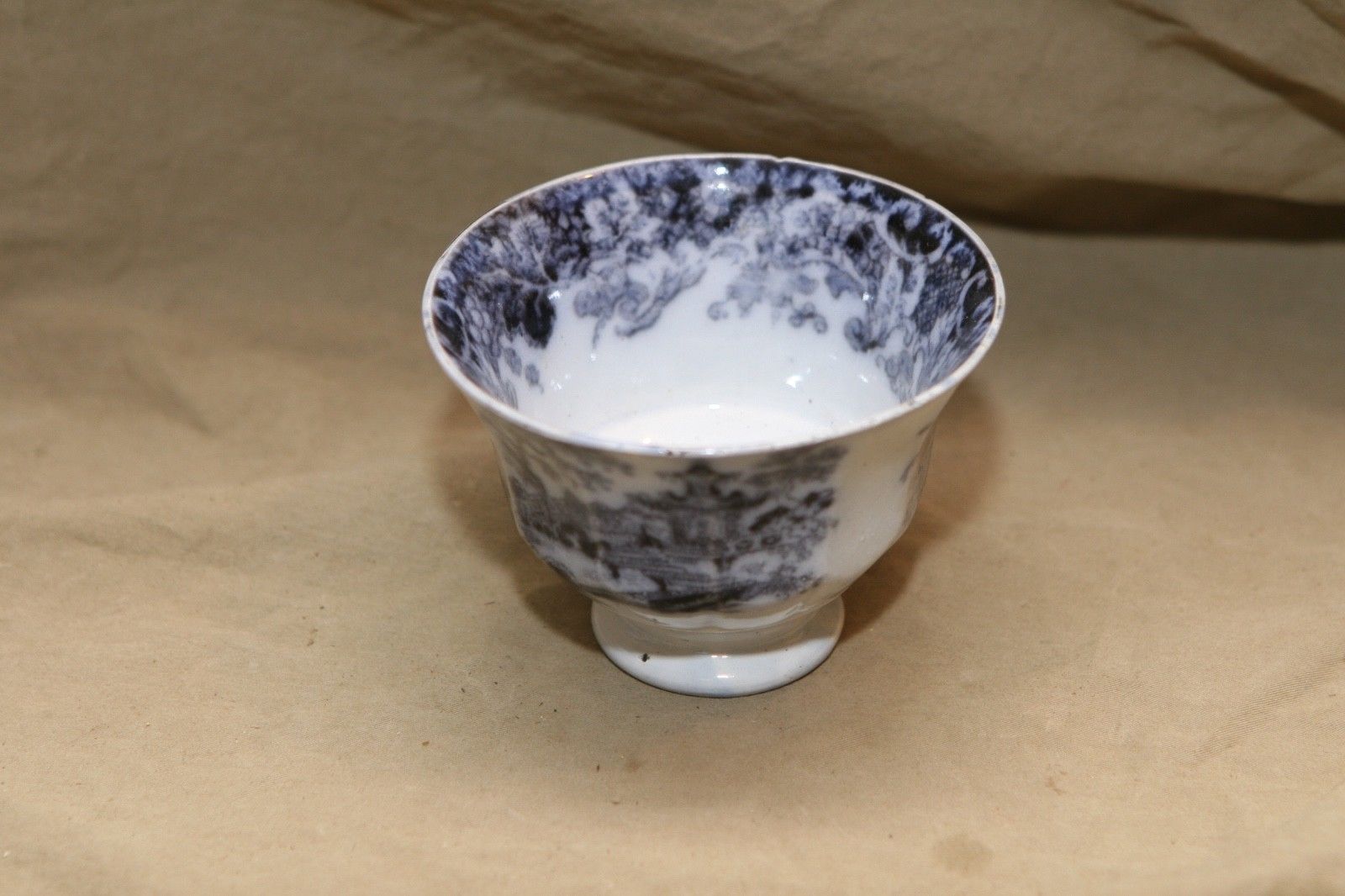 Antique Porcelain Black Mulberry Handless Tea Cup Transferware