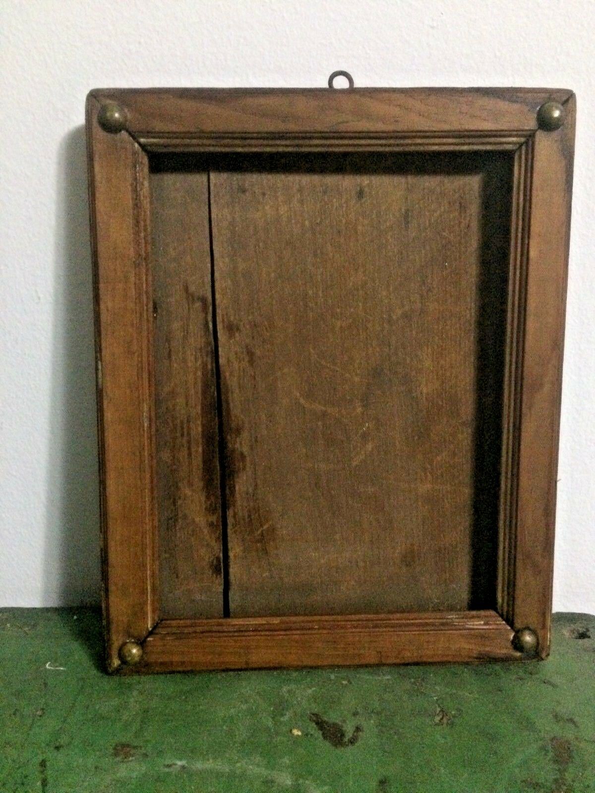 Title (ebay affiliate link): Small Antique Wood Picture Frame Wood Back Brass Tack Corners Loop for Hanging