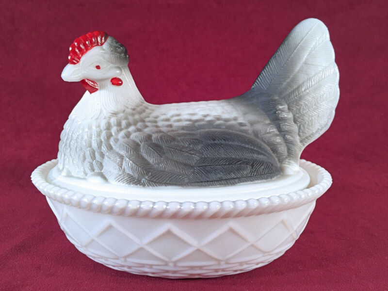 Title (ebay affiliate link): Rosso Westmoreland Milk Glass Air Brushed Chicken Hen On Nest Covered Dish