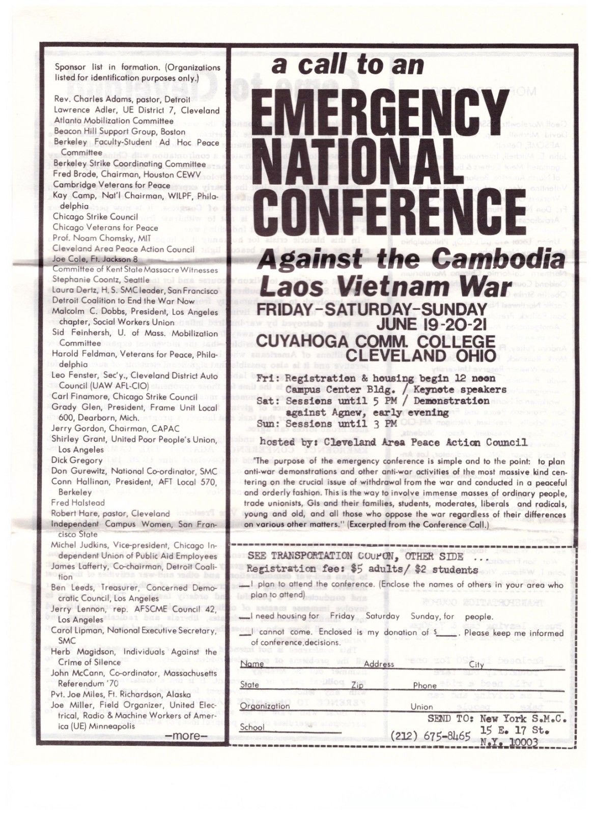 1970 ANTI VIETNAM WAR FLYER CLEVELAND EMERGENCY NATIONAL CONFERENCE
