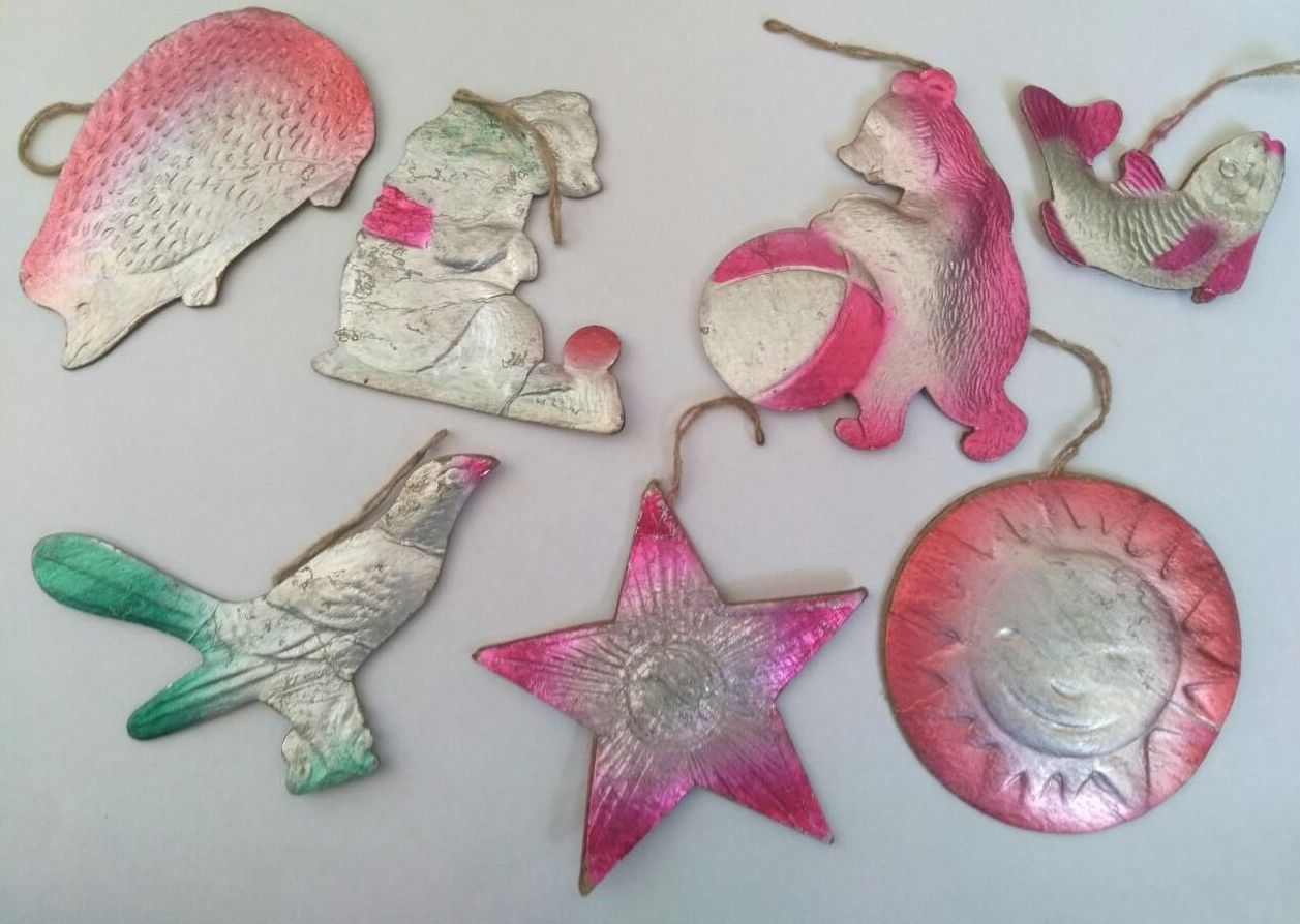 7 Old Vintage Soviet Russian USSR Cardboard Dresden Christmas Ornaments Decorati