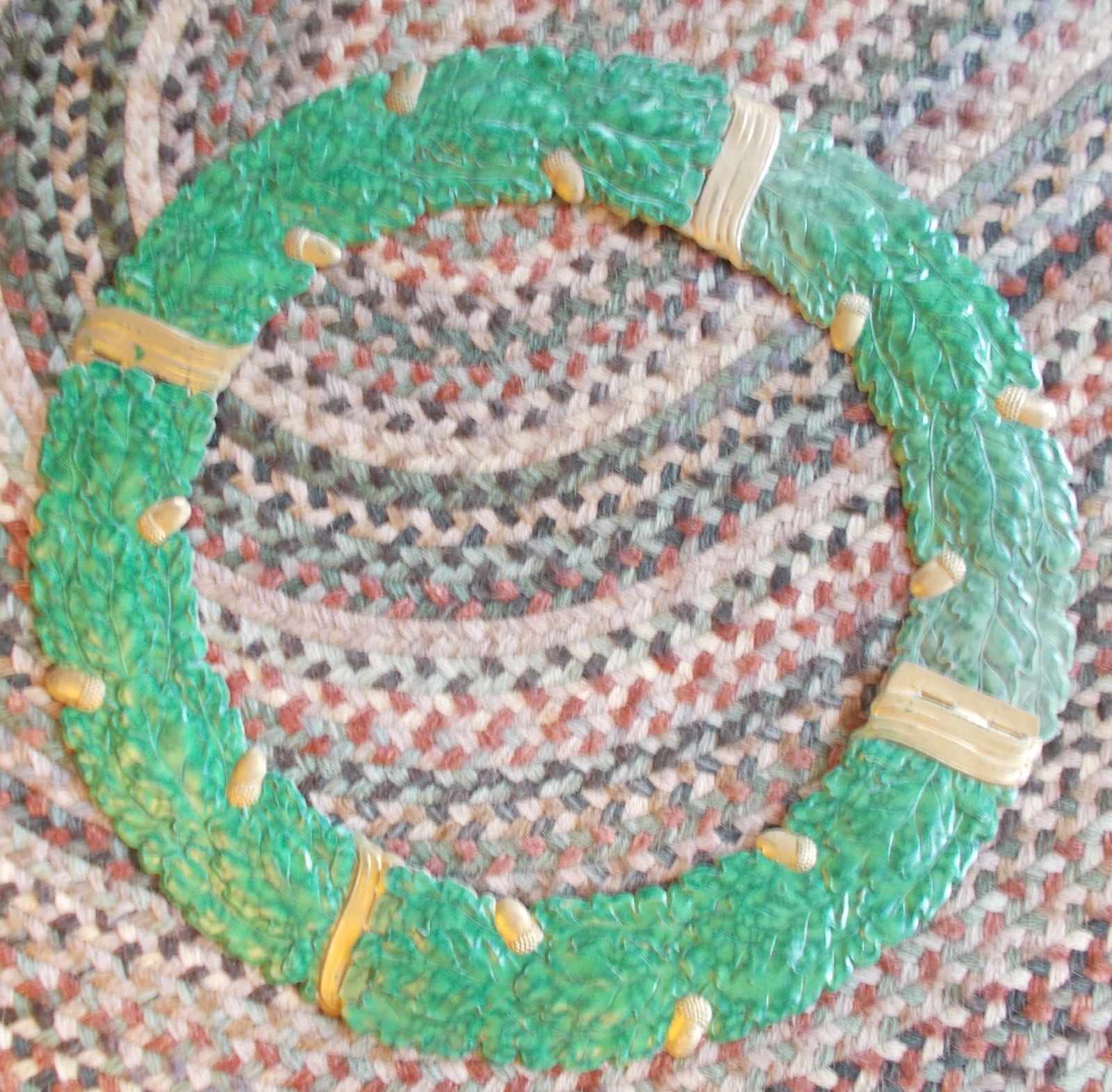 Title (ebay affiliate link): VINTAGE GERMAN HEAVILY EMBOSSED CARDBOARD 4 SECTION ACORN WREATH DECORATION