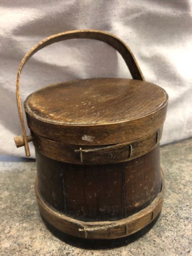 Title (ebay affiliate link): Small Vintage Firkin-Wooden Sugar Bucket-Stack Topper-5" Tall