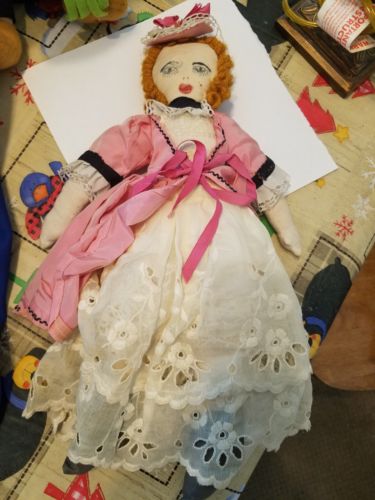 Title (ebay affiliate link): Vintage Antique Cloth Doll Farmhouse Handmade 1920''s era Rag Embroidered 16"