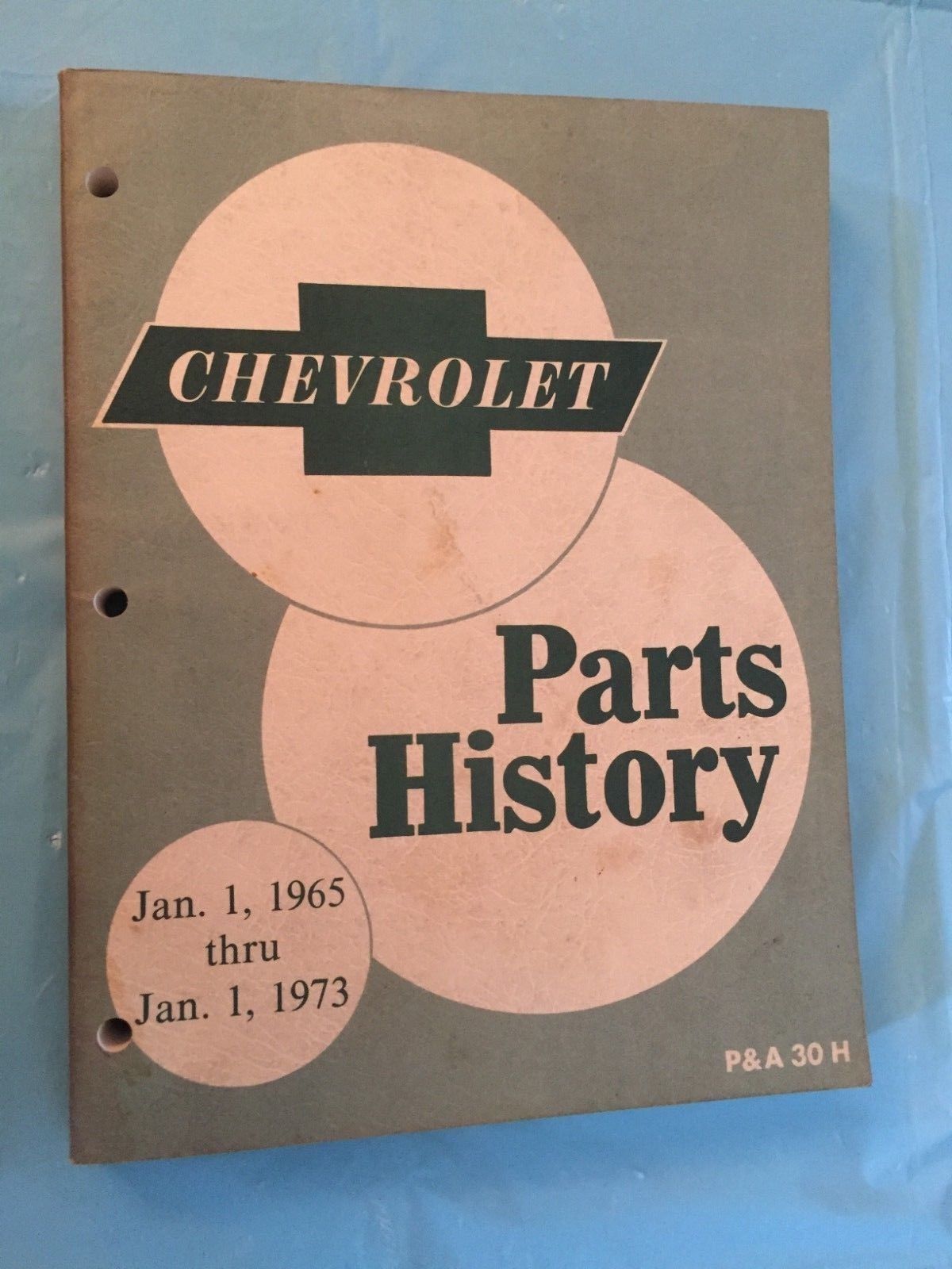 Title (ebay affiliate link): 1-1-65 thru 1-1-73 Chevrolet Parts History Manual (P&A 30 H)