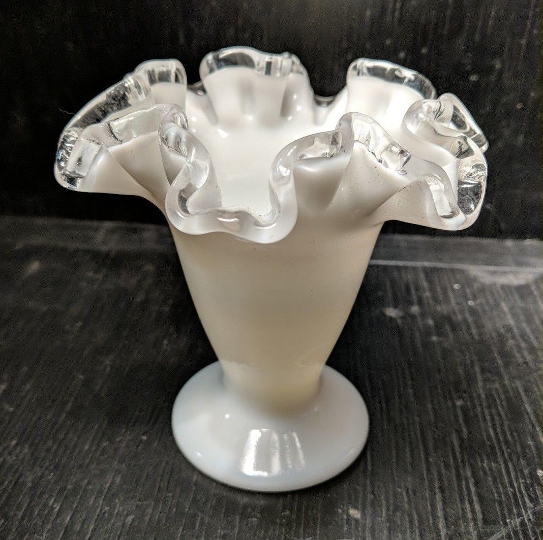 FENTON SILVER CREST VASE Ruffled Edge Trumpet Milk Glass