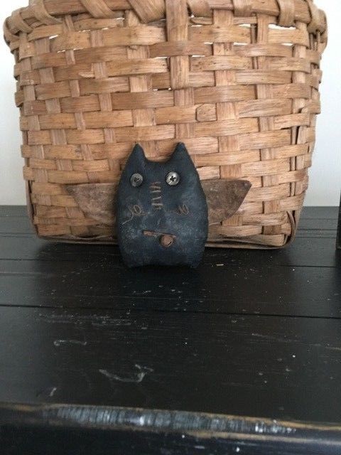 Primitive Little Black Kitty Angel