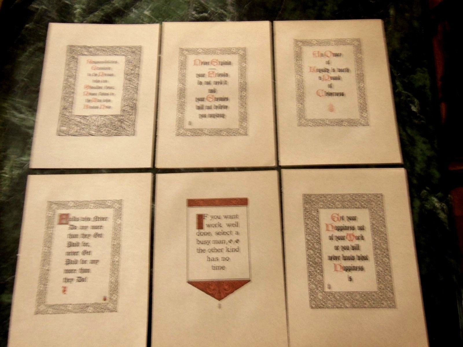 Title (ebay affiliate link): ROYCROFT- SET OF FOUR MOTTOS- "NEVER EXPLAIN..."- ARTS & CRAFTS- CIRCA 1930