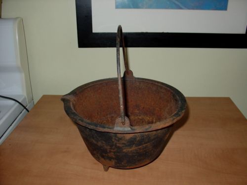 Title (ebay affiliate link): Antique Cast Iron Cauldron Pot 3 Leg Poring Spout Bail Handle DE-50