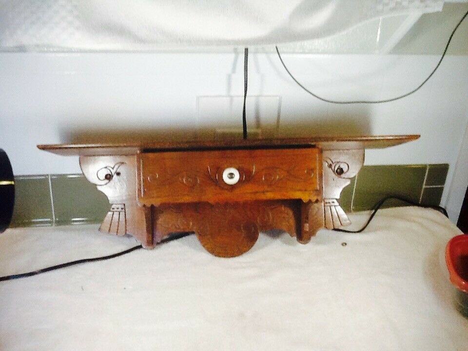 Walnut Clock Shelf w/ Drawer Eastlake Style Antique