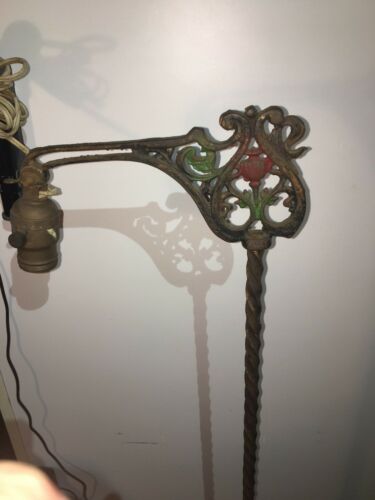 Title (ebay affiliate link): Antique Bridge Floor Lamp Cast Wrought Iron Solid Turned Rod Rosette Base