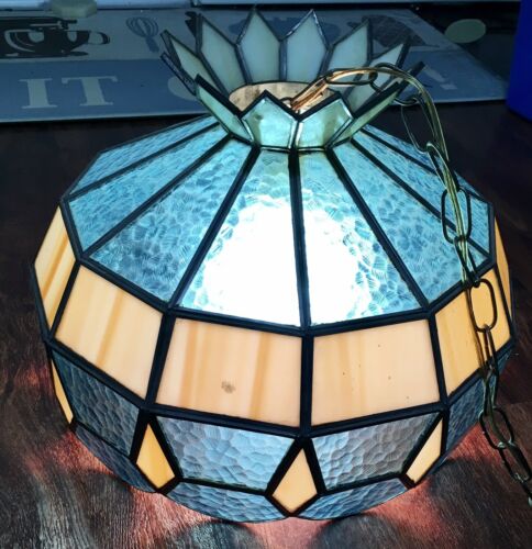Antique slag glass hanging lamp WORKS GREAT!