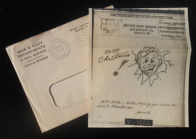 Title (ebay affiliate link): 1943 WW2 V-Mail Pvt. Harold L. Rhoads Edlar Brunner 1313 Walnut St. Reading PA