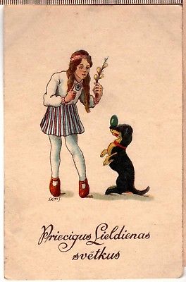 Title (ebay affiliate link): Dachshund dog. Easter. Saukums - Artist Signed Latvia 1920s PC