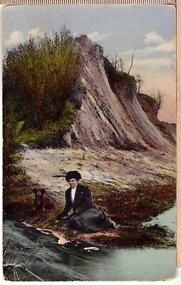 Dachshund dog with mistress. Russia Latvia 1910 RPPC
