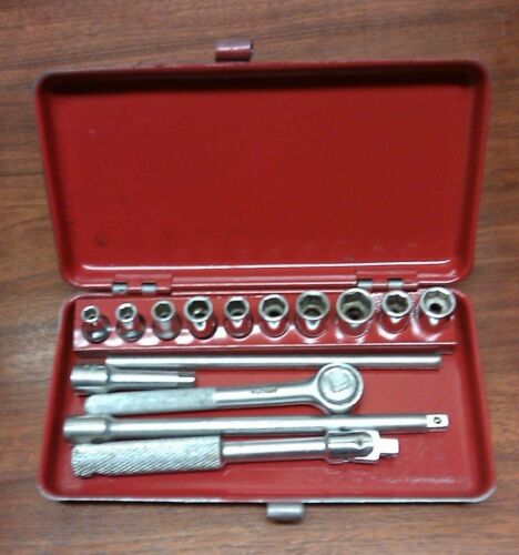 Title (ebay affiliate link): Vintage POWR-KRAFT Tools (16) Piece Socket Set 1/4" Drive Ratchet Metal Tool Box