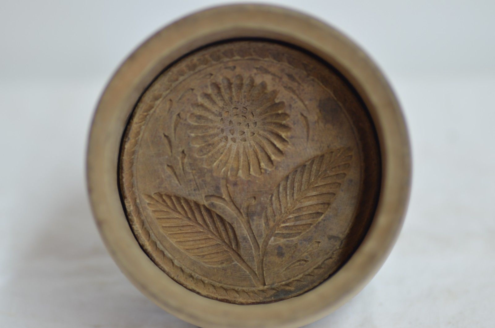 Wood Butter Mold Press stamp - Antique Primitive - with Sun Flower