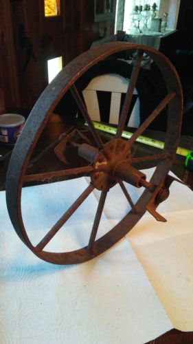 Title (ebay affiliate link): Old Vintage Antique Primitive Steel Spoke Wagon Cart Implement Wheels Farm Decor